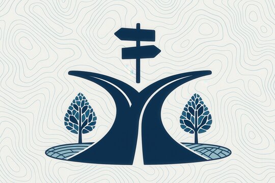 Decision making process with icons illustrating strategy and conceptual thinking on blue backdrop