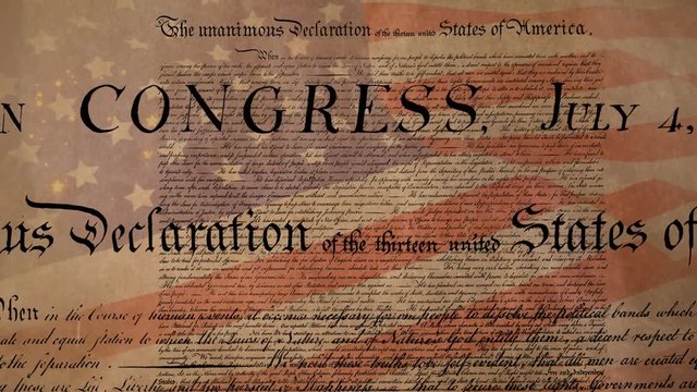 The signing of a historic American document is depicted with a quill pen and antique paper.