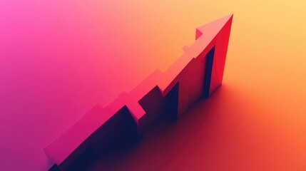 Neon declining bar chart with pink arrow on dark background