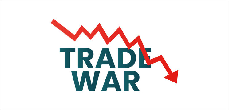 trade,war,economy flat vector illustration of trade war text with a red zigzag downward arrow showing economic crisis recession