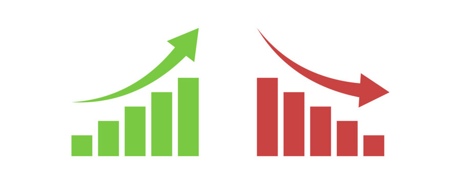 Business growing bar graph icon arrow symbol. Growth and decline graphs and charts icons. Profit growing icon symbol. Diagram bar. increase and decrease chart icons