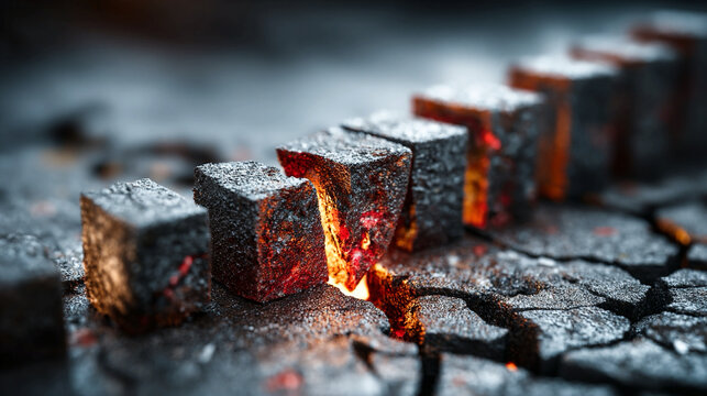 Neon illuminated graphic depicting declining market performance with caution warning