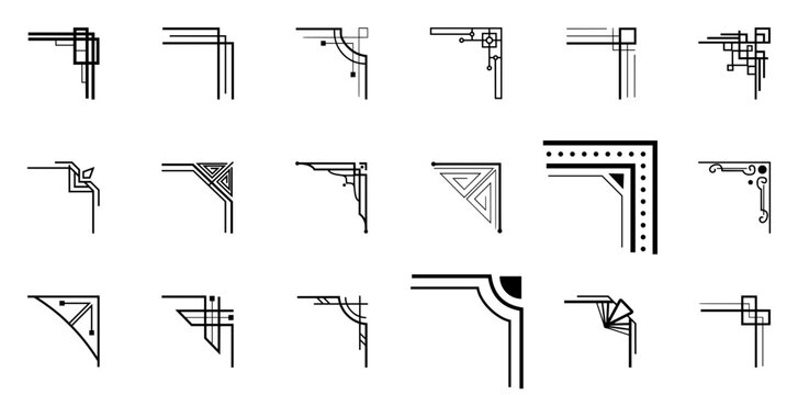 Collection of geometric art deco ornament. Luxury golden decorative elements with lines, ornate corner, borders, frames, headers, dividers. Set of elegant design suitable for card, invitation, poster.