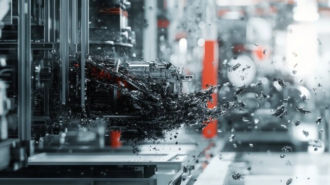 Industrial Machine with Explosion of Metal Fragments