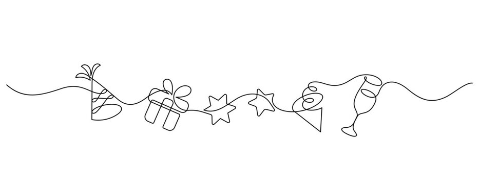 new year party celebration decorate one line drawing continuous. cute icon symbol divider ornate minimalism thin line illustration
