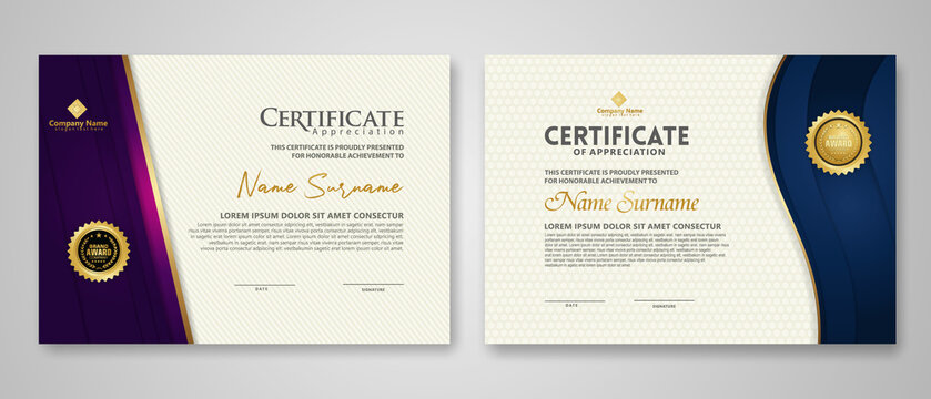 Certificate of achievement and appreciation border template with luxury badge and textured modern floral pattern. For award, business, and education needs