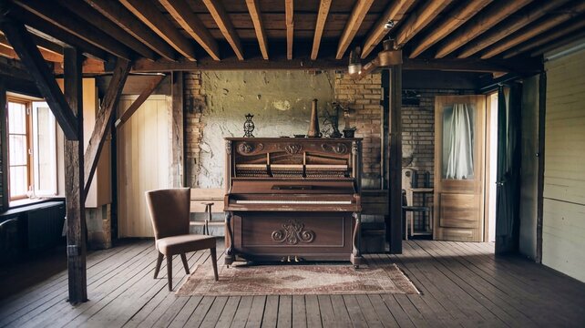 Elegant antique interior with large window