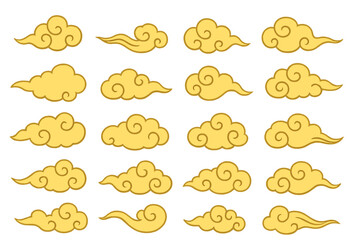 Collection of stylized golden clouds and asian auspicious clouds