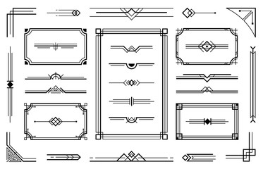 Linear geometric Art Deco ornaments. Retro label frame, minimal decorative ornament dividers and ornamental borders vector set. Creative geometric decorative design elements collection