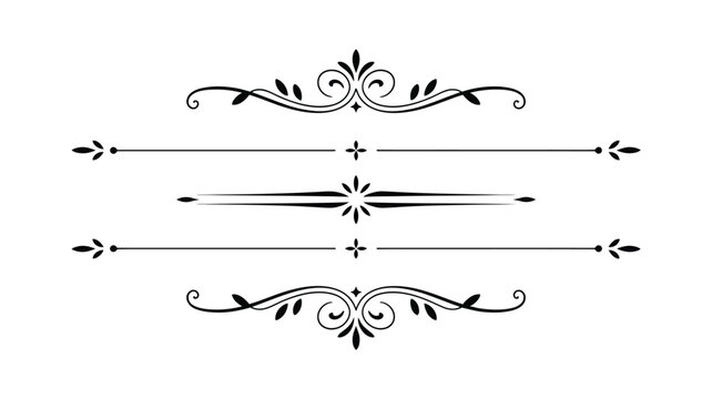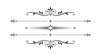 Collection of decorative ornamental swirls borders, flourishes and dividers ornate tribal elements in black on white background