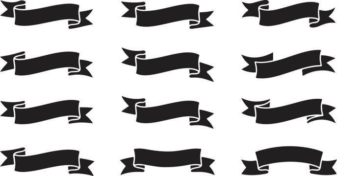 Ribbon set. Tape blank black glyph collection, decorative silhouette icons. Vintage outline design, ribbons sign style. Web icon kit of text banner tapes