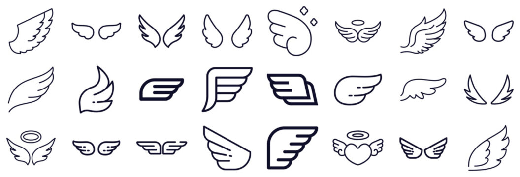 Black wings silhouette vector set, the wings set is ideal for logo, emblem, badge design. Versatile for art, heraldry, animal symbolism. Ranging from simple to intricate feather or scale details
