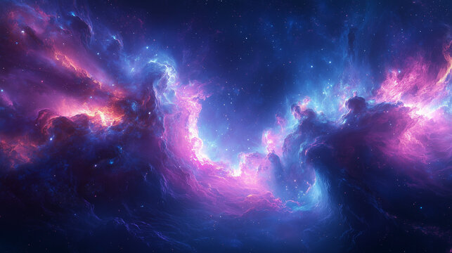 Vibrant Cosmic Nebula and Stars in Deep Space, A Celestial Spectacle of Light and Color.