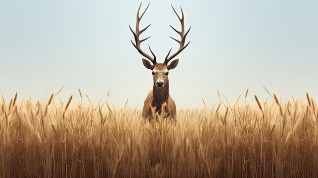 A deceer's head turned to the side in a field of tall grass - close-up