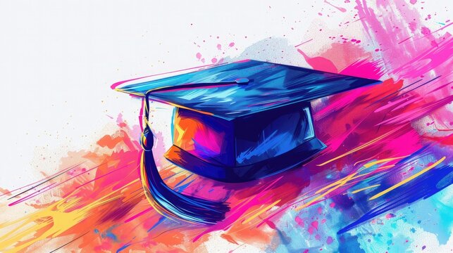 Vibrant artistic representation of a graduation cap, symbolizing education, achievement and success with colorful abstract background.