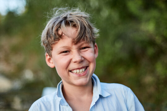 Portrait d'un ado garçon blonde en exterieur