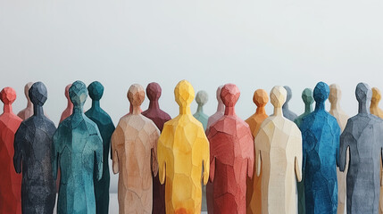 concept of Belonging Inclusion Diversity Equity DEIB, group of multicolor hand painted people	isolated on white background