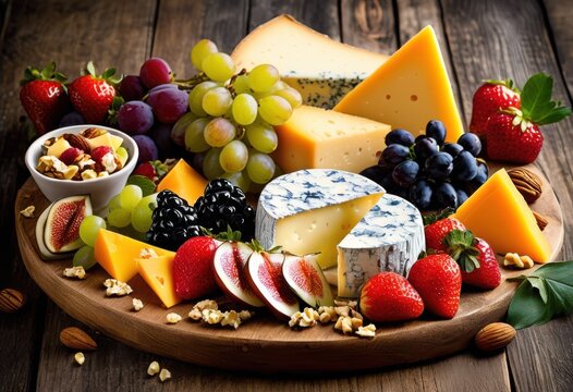 delectable arrangement gourmet cheese plate colorful fruits nuts exuding vibrancy artistry, appetizer, board, charcuterie, platter, assortment, selection