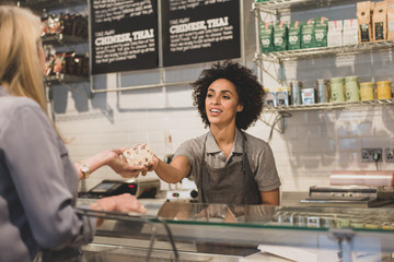 Sales assistant serving customer at a deli counter