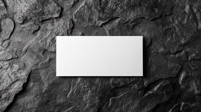 Top view template for business card. Mockup white card on dark grey slate texture background.