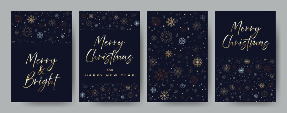 Minimalist winter wonderland greeting card template, frosted silver typography “2026” on deep navy background, delicate snowflake pattern subtle gold foil effect, clean modern graphic design