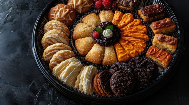 Delicious Assorted Pastries On Elegant Serving Platter Templates