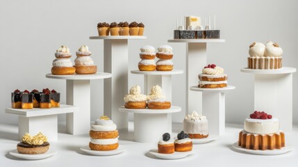 A Lavish Display of Delectable Assorted Pastries and Exquisite Baked Treats Elegantly Arranged on Tiered Serving Platters at a Sophisticated Event Setting