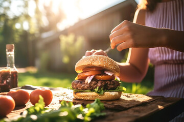 Delicious cheeseburger highlighting backyard grill bbq night event