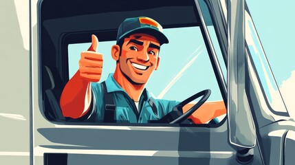 Happy Truck Driver Giving Thumbs Up - Transportation and Logistics