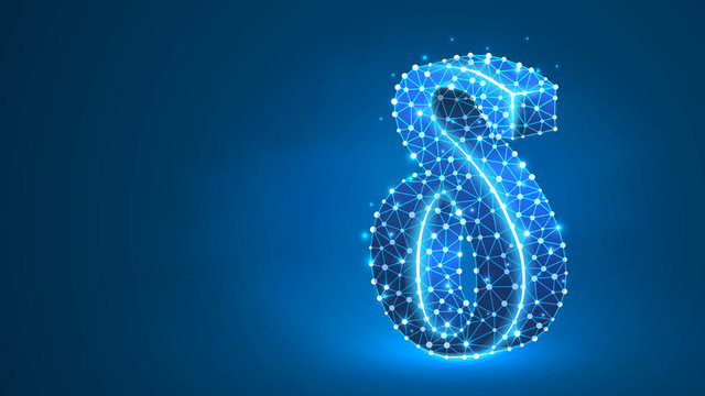Delta, the letter of a Greek alphabet. Greek numerals, mathematical number four concept. Abstract, digital, wireframe, low poly mesh, vector blue neon 3d illustration. Triangle, line, dot