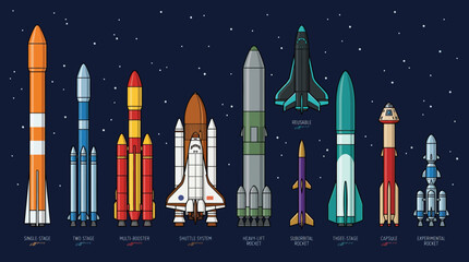Space Launch Vehicle Comparison Vector – Falcon 9, Saturn V, Soyuz, Ariane 5, Shuttle, Long March, Delta IV, Electron, New Shepard, SpaceShipTwo