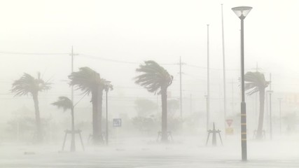Palm Trees Battered By Hurricane Eyewall Wind - Muifa