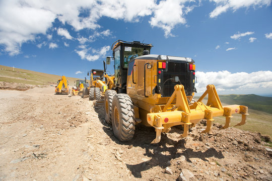 Heavy equipment cleans construction site from scrap metal, waste in large container