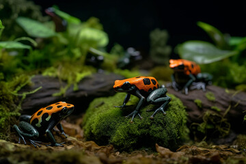 Close up of wild and colorful dendrobates frogs