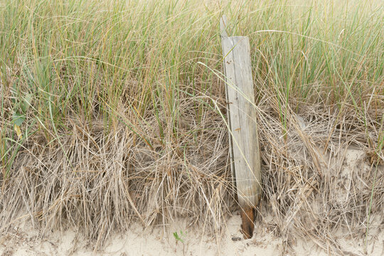 Cape Cod Beach dune protection fence in W. Dennis Beach Massachusetts