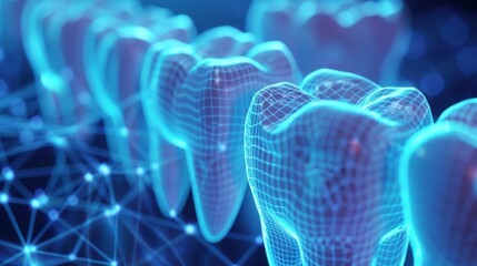 A detailed depiction of human teeth rendered in a digital format, showcasing dental technology advancements and their impact on oral health care and preventive practices.