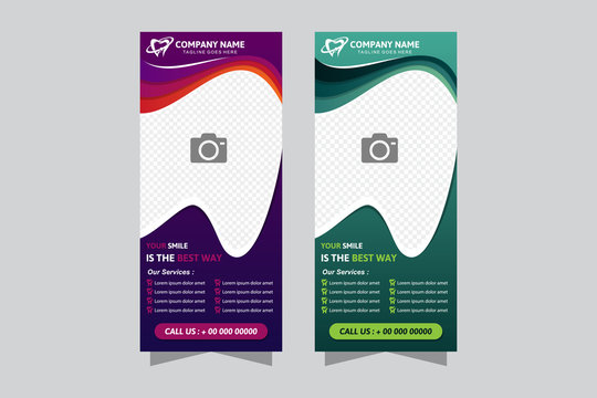 Vertical banner with product. Blue and purple dental background abstract - concept health care or medicine technology. Vector Illustration EPS 10, Graphic Design elements vertical banner, flyer