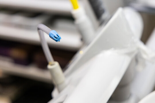 Suction instrument with rubber tip used in dental clinic during surgery to eject saliva and blood