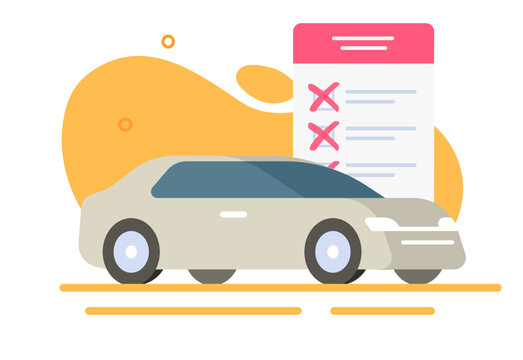 Car auto inspection failed icon, motor vehicle exam verification check list failure vector illustration, automobile checklist not passed report, rejected study or safety automotive paper document