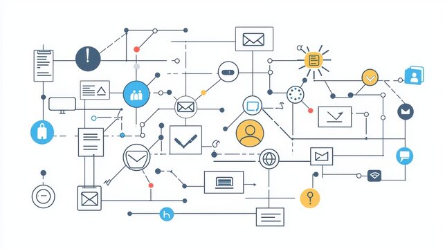 Business Communication Flowchart Illustrating Management Pathways and Departmental Icons