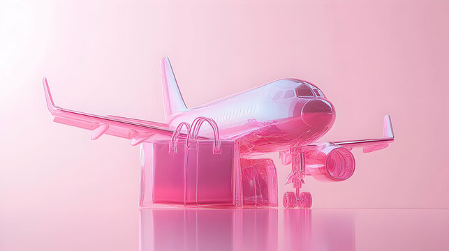 Pink Airplane Carrying Gift Boxes on Pink Background