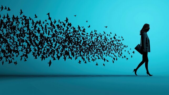 A Lone Yellow Crow Stands Out Among a Vast Flock of Black Crows Capturing the Essence of Individuality and Uniqueness in the Natural World