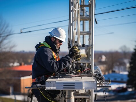 Confident Electrician: A skilled electrician, radiating confidence and expertise, stands proudly amidst a complex network of wires and machinery, embodying the dedication and precision of the trade.