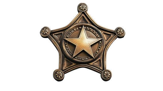Bronze Sheriff Star Badge Emblem of Law Enforcement isolated on a Transparent or white Background
