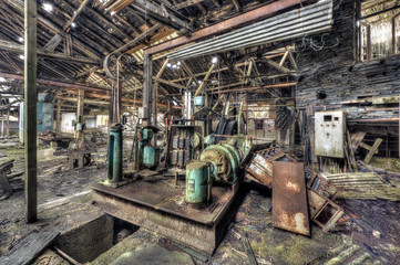 An abandoned factory, eerie, desolate, haunting, industrial, moody lighting, Generative AI, illustration