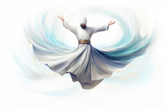 Illustration of whirling dervish dancer in white dress