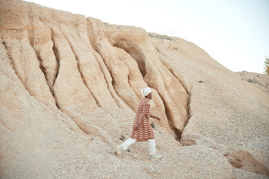 illustration of desert views, rocks, valleys and date palm trees. background with cartoon or anime style