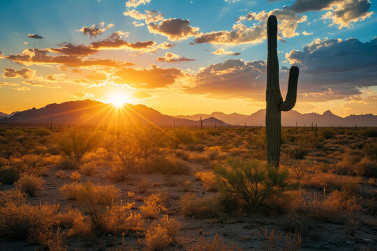 Sunset view of the desert and mountains near Phoenix, Arizona, USA