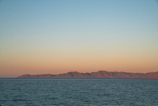 Lonely island on in the middle of the ocean with two palms and hammock between. Desert island on the see idea for relax, holiday trip, sunbathing and last minute tourism offer.