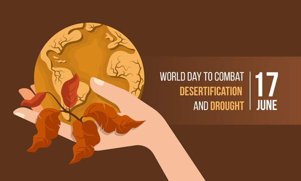 World Day to Combat Desertification and Drought banner with hand hold circle drought soil dry desert globle earth and dry leaf branch on brown background vector design